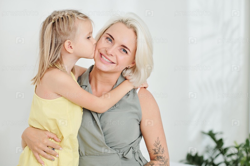 Дочь целует мать