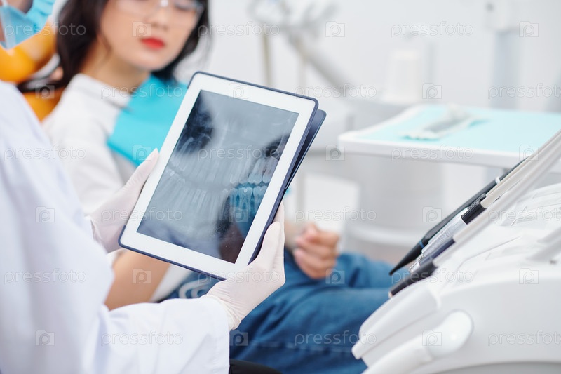 Стоматолог проверяет рентген челюсти