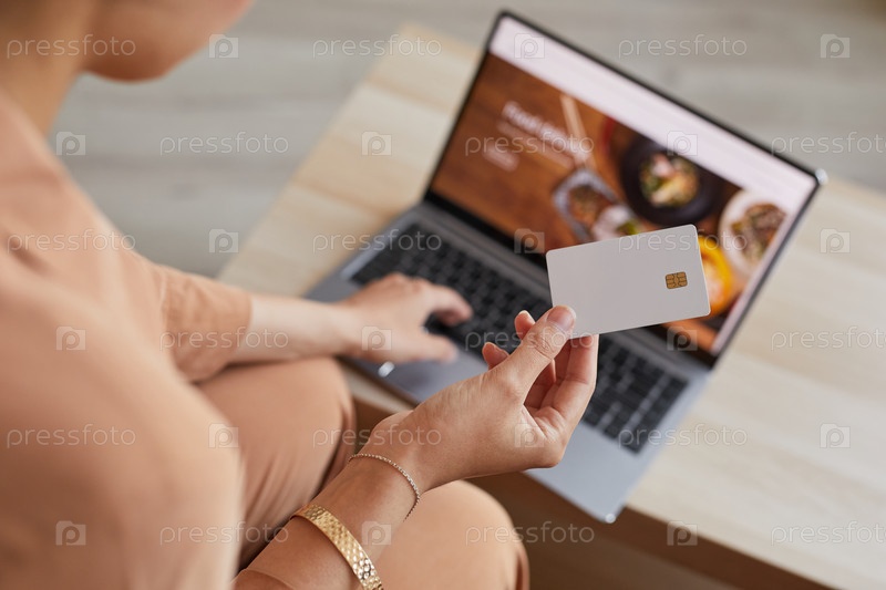 Женщина заказывает еду онлайн