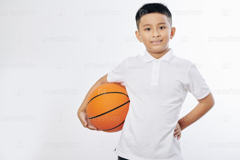 Мальчик позирует с баскетбольным мячом