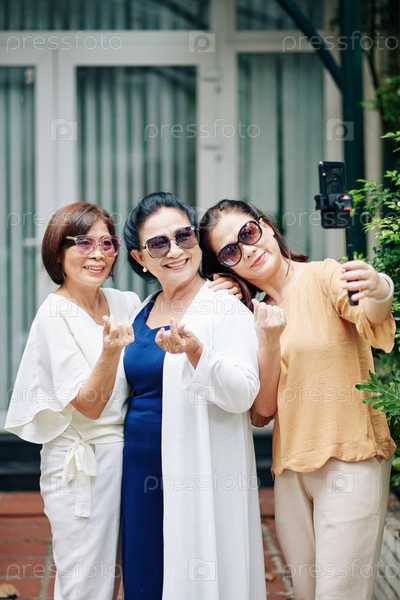 Пожилые женщины, делающие селфи