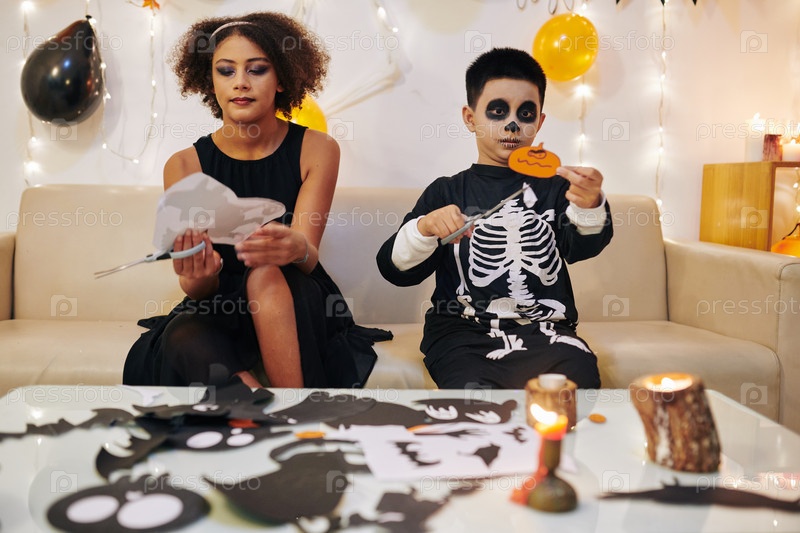 Братья и сестры режут украшения на Хэллоуин