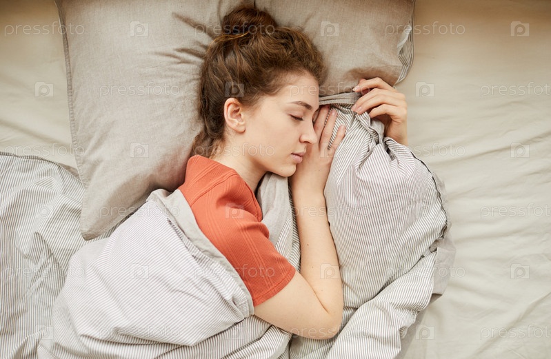 Женщина спит с одеялом