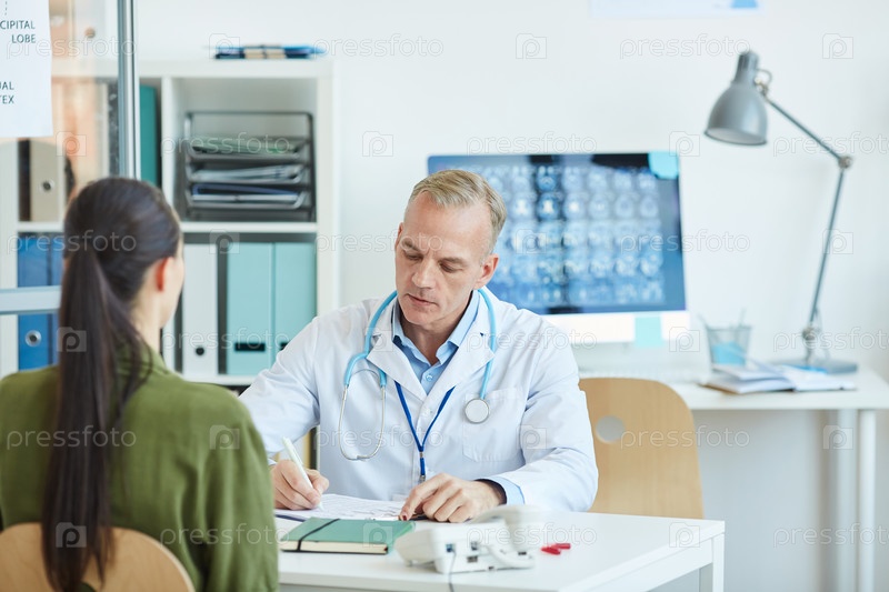 Зрелый врач консультирует пациента в клинике