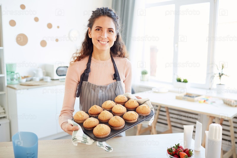 Счастливая женщина с выпеченными кексами