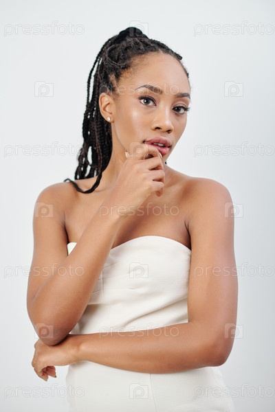 Молодая задумчивая черная женщина