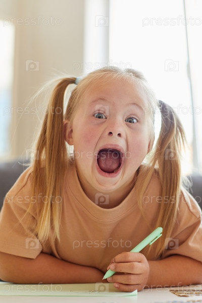 Девочка с синдромом Дауна дурачится в школе