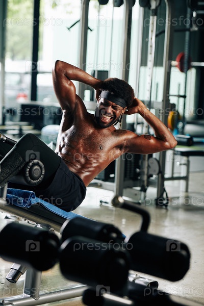 Спортивный мужчина делает сидячие упражнения