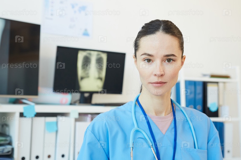 Портрет молодой женщины-медика в клинике