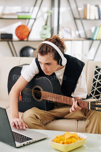 Мальчик учится играть новую песню