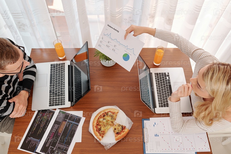 Пара обсуждает график активности посетителей