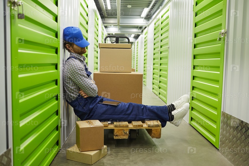 Работник отдыхает на складе