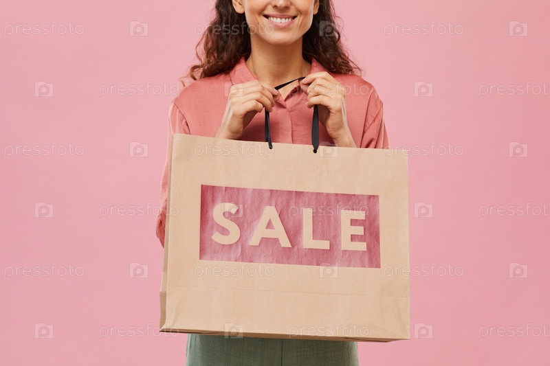 Женщина покупает покупки на распродаже