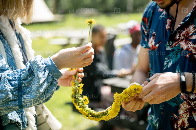 Черные хипстеры разговаривают на фестивальном кемпинге