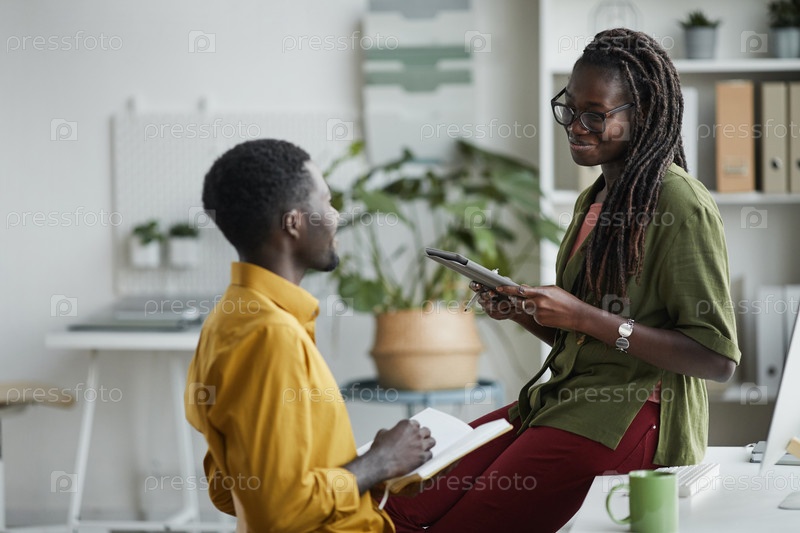 Молодые афроамериканцы общаются в офисе