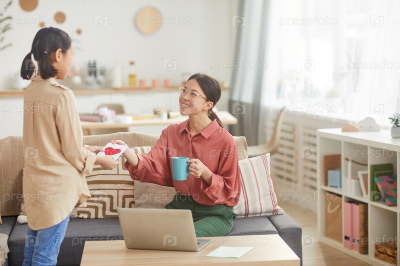 Женщина получает открытку от дочери Happy