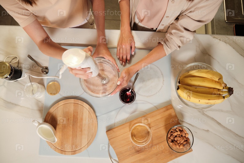 Обзор двух современных женщин, смешивающих ингредиенты домашнего мороженого