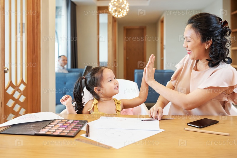 Женщина дает высокую пятерку дочери