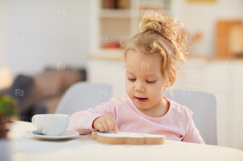 Маленькая девочка сидит за столом