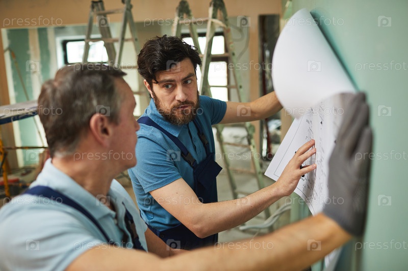 Строительные рабочие обсуждают планы