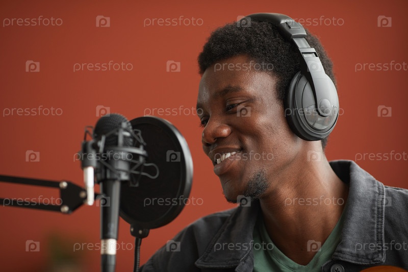 Афроамериканский мужчина записывает в студии
