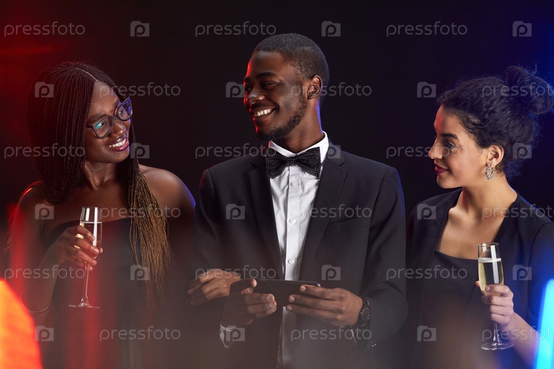 Элегантная группа друзей, наслаждающихся вечеринкой