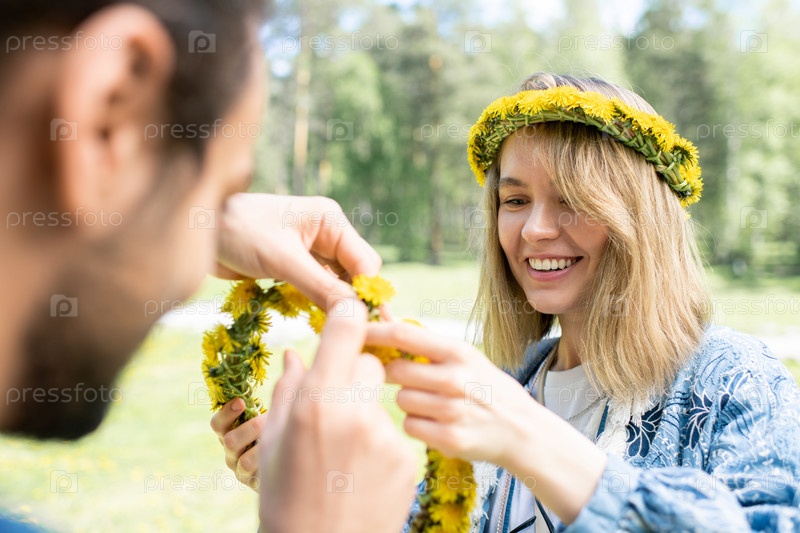 Изготовление венка из одуванчика с парнем