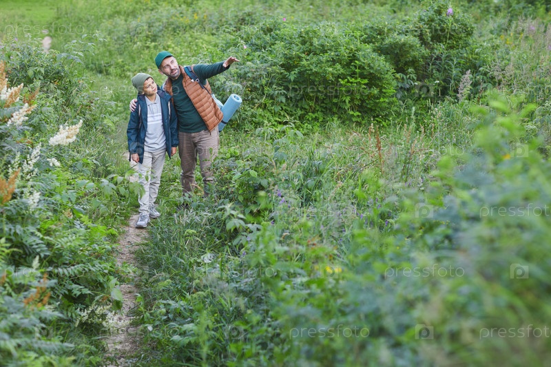 Зрелый мужчина ходит в поход с зрелым сыном