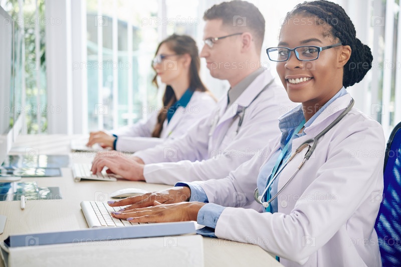 Медицинский исследователь, работающий на компьютере