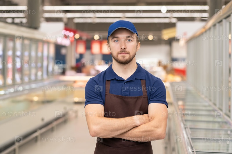 Уверенный мужчина, работающий в магазине
