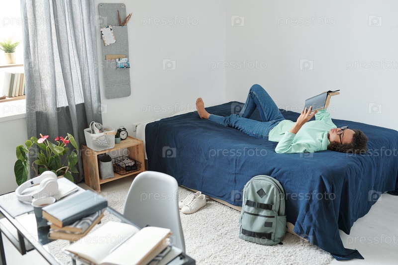 Молодая студентка смешанной расы, держащая открытую книгу перед лицом во время чтения
