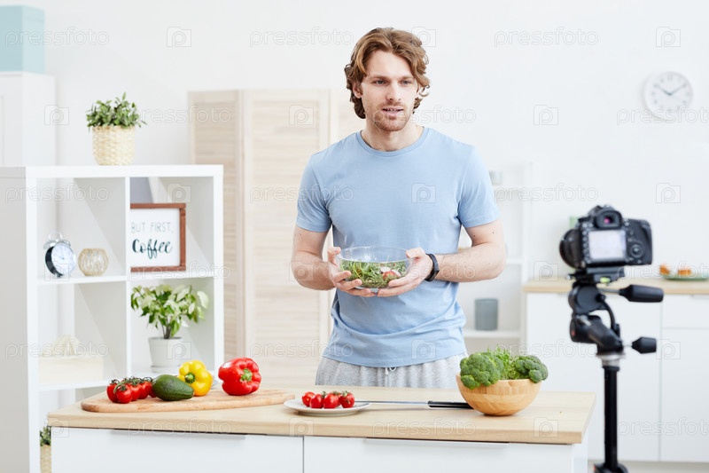 Мужчина готовит салат на видео
