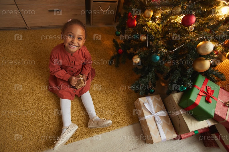 Счастливая афроамериканская девушка, держащая рождественский подарок