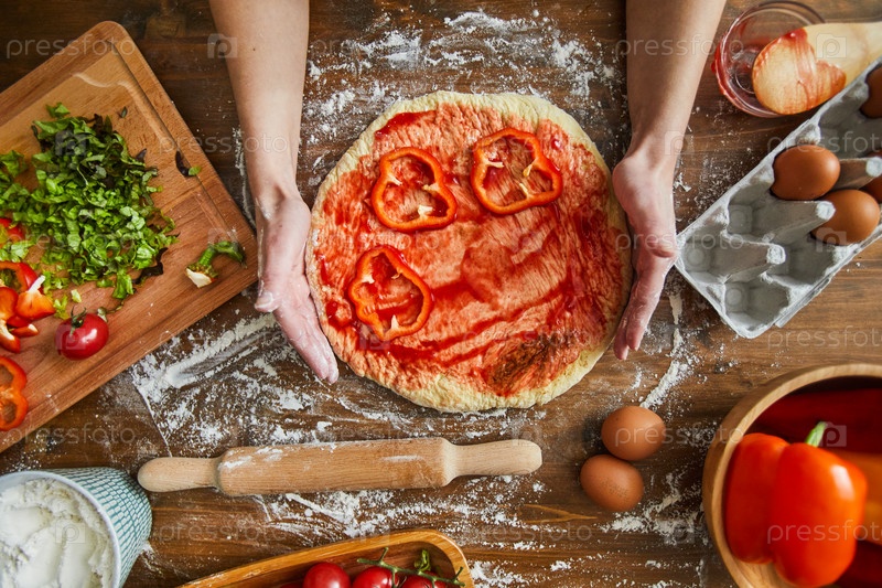 Женщина делает пиццу