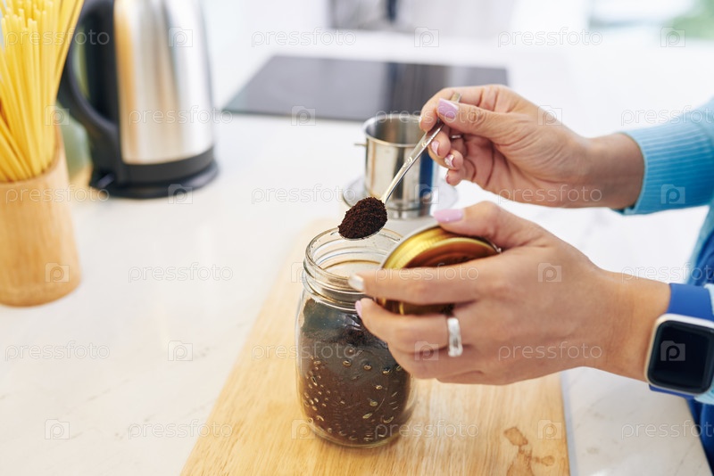 Женщина делает кофе