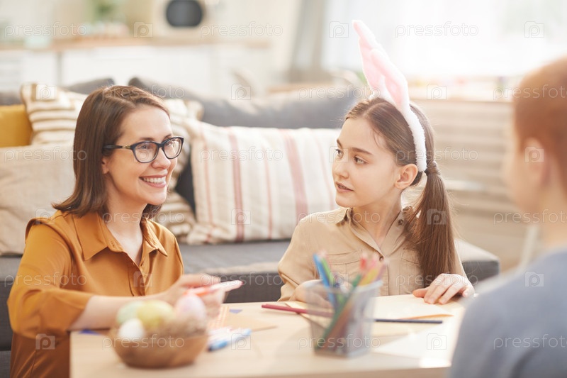 Мать проводит время со своими детьми