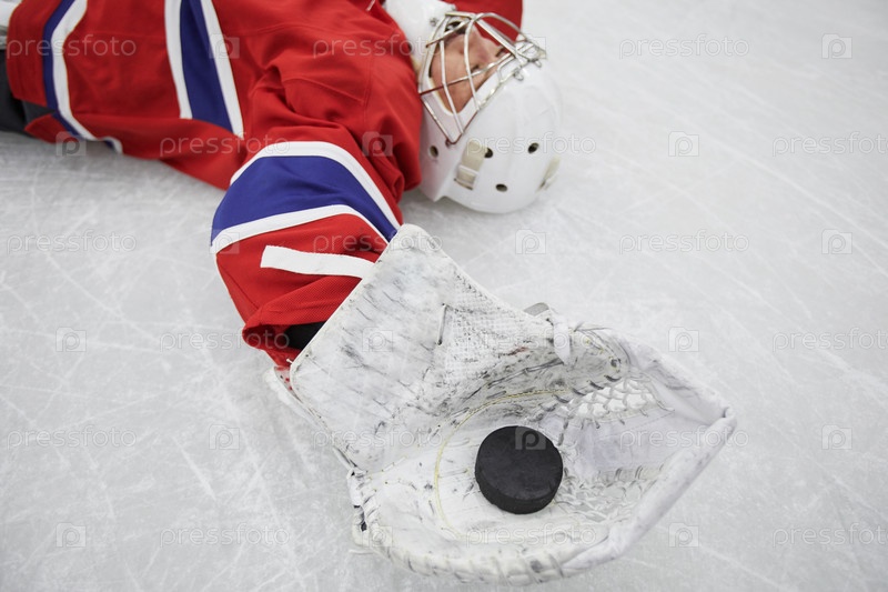 Хоккейный игрок лежит на льду