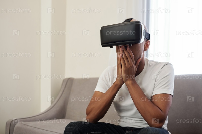 Шокированный мужчина в очках VR