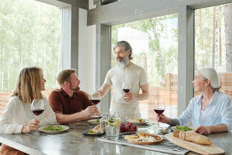 Старший отец выносит тост на семейном ужине