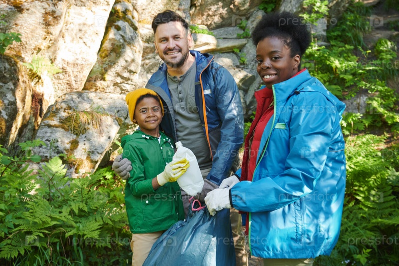 Семья собирает мусор