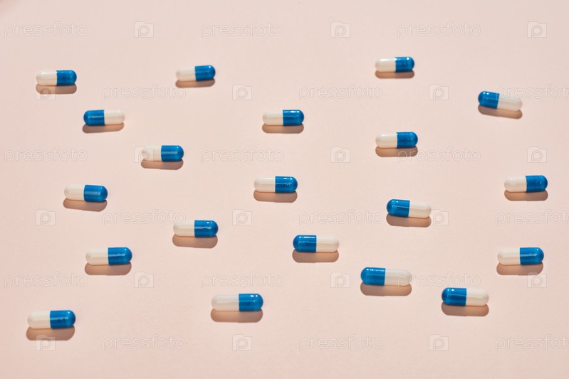 Белый и синий капсульные таблетки