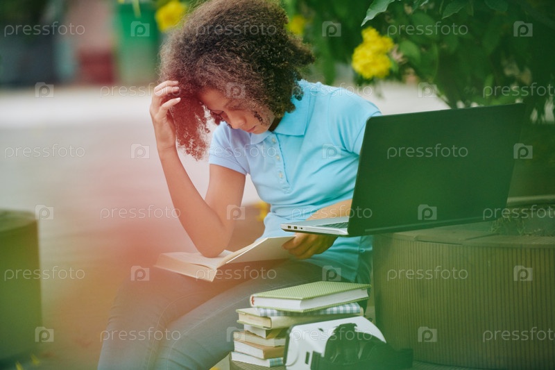 Пенсивная школьница читает книгу