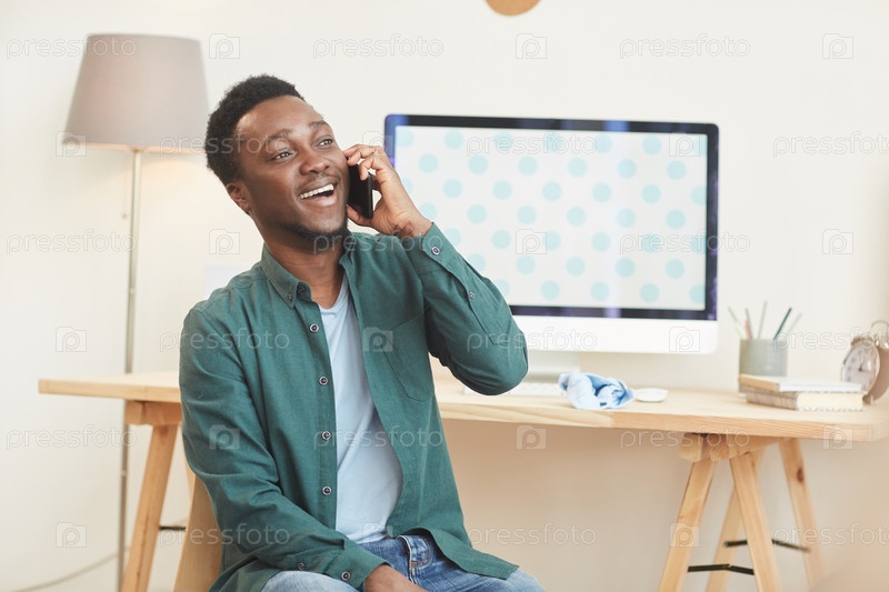 Афроамериканец разговаривает по телефону в министерстве внутренних дел