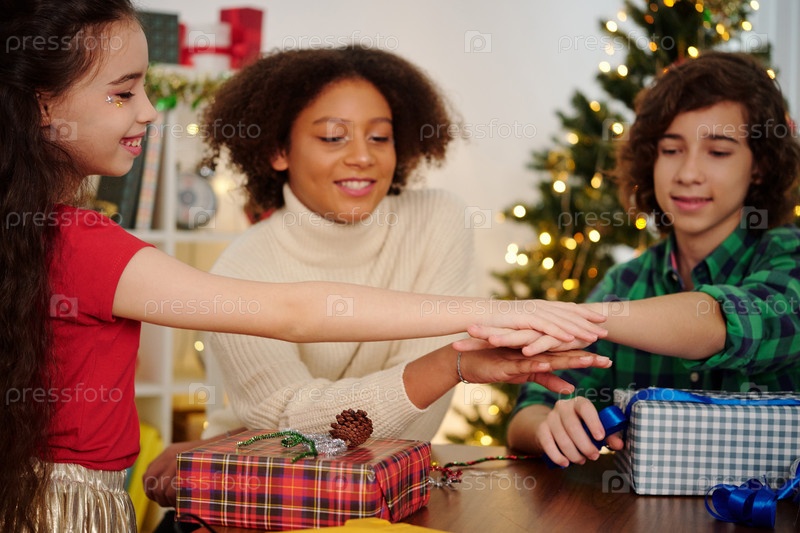 Подростки, складывающие руки