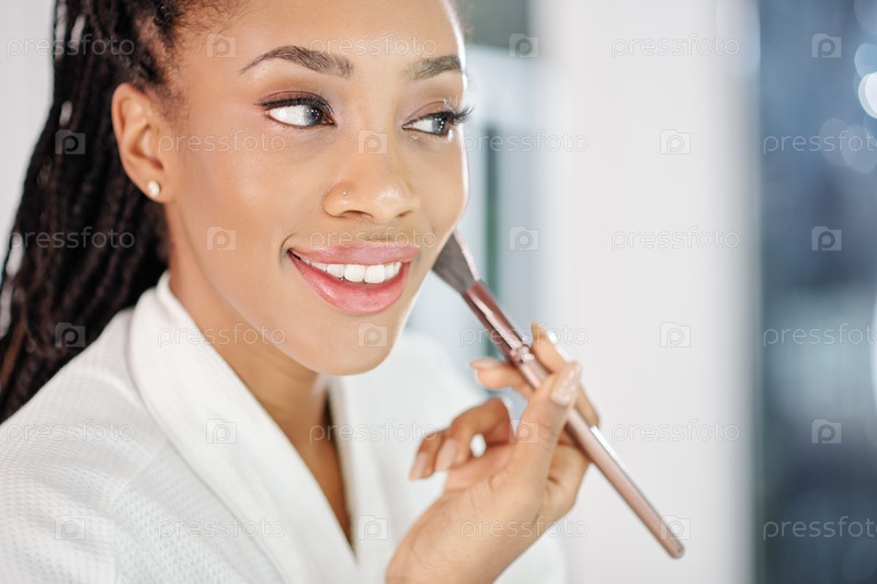 Женщина, наносящая лицевой порошок