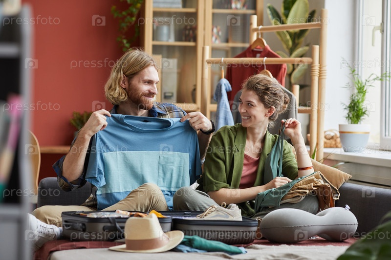 Молодая пара упаковывает одежду
