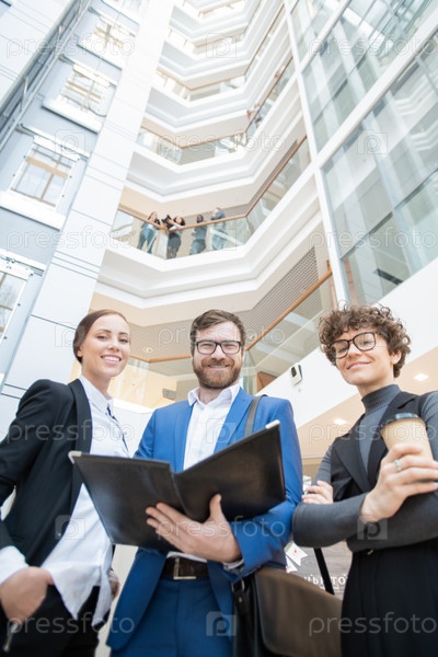 Позитивные коллеги просматривают документы