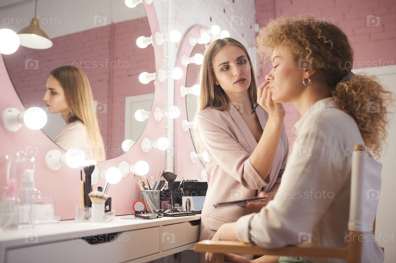 Макияж-художник работает с моделью