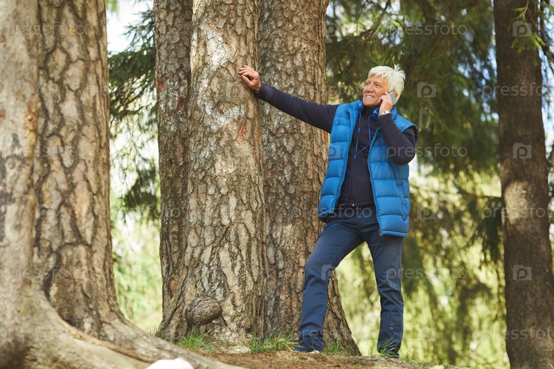 Старший мужчина, разговаривающий по телефону в Active Woods