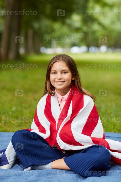 Улыбающаяся девушка, покрытая одеждой США Blanket Outdoors